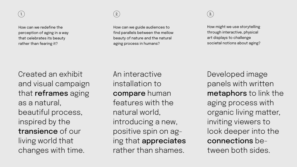The Nature of Aging Gracefully is a conceptual thesis project for an interactive exhibition that gently reframes societal perceptions of aging.